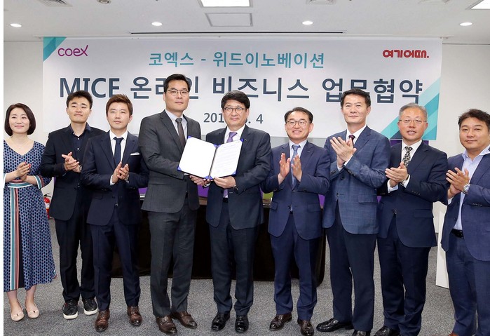 [로컬세계 길도원 기자]코엑스(사장 이동원)와 여기어때를 운영하는 위드이노베이션(대표 황재웅)은 4일 오전 코엑스 프라이드랩에서 마이스(MICE) 숙박 인프라 구축을 위한 양해각서(MOU)를 체결했다고 밝혔다.