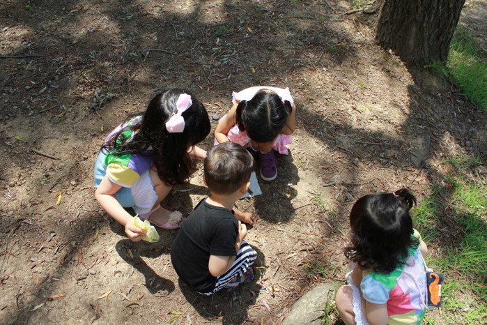▲아이들이 숲에서 흙을 만지며 놀고 있다. |