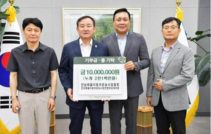 [로컬세계 = 이남규 기자]전남 담양군은 전국화물자동차운송사업연합회·공제조합이 취약계층을 돕기 위한 기부금 1천만 원을 담양군복지재단에 기탁해 왔다고 밝혔다.