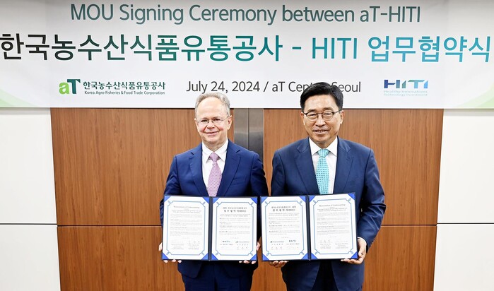 한국농수산식품유통공사(사장 김춘진)는 24일 서울 양재동 aT센터에서 UAE 소재 글로벌 투자기업 HITI(Healthy Innovations Technology Investment Limited)와 지속가능한 먹거리 환경조성을 위한 업무협약을 체결했다.