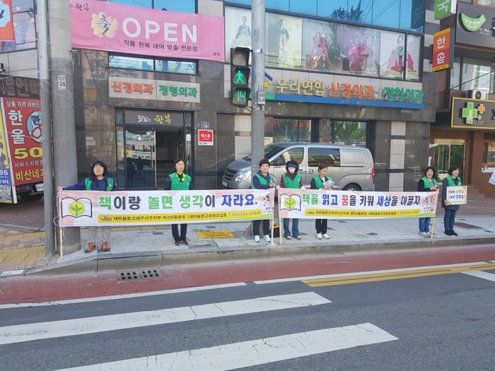 [로컬세계 박세환 기자]새마을문고대구서구지부는 도서나눔 문화 확산과 시민의 독서생활화에 기여하기 위해 18일 오전 7시 30분부터 1시간 동안 신평리네거리에서 독서활성화 캠페인을 전개했다고 밝혔다.