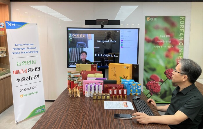 농협경제지주는 23일 인삼농협의 베트남 시장 개척 및 수출경쟁력 강화를 위한 온라인 수출상담회를 개최했다.