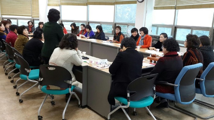 ▲21일 진안군 여성일자리지원센터 2층 회의실에서 진안군 여성단체협의회 임원들이 2014년 결산보고를 하고 있다. ©로컬세계 |