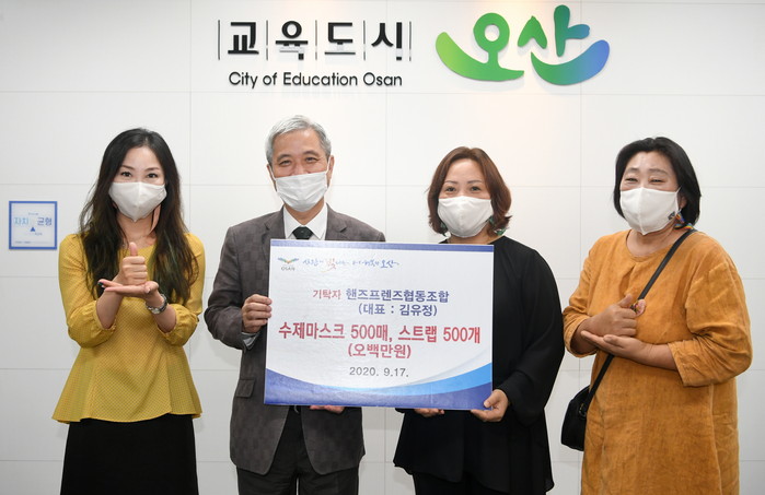 곽상욱 오산시장은 “모두가 힘든 시기에 취약계층을 위하여 마스크를 직접 제작하고 나눔을 실천해 주신 핸즈프렌즈 협동조합에 진심으로 감사드린다”면서, “장애인들이 감염병을 선제적으로 예방할 수 있도록 잘 전달하겠다”고 말했다.