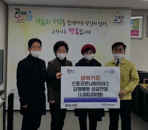 [로컬세계 최아침 기자]경기 고양시는 지난 7일 시청에서 삼보가든(대표 이종옥)이 참여한 '신종 코로나바이러스 감염증 예방을 위한 성금 전달식'을 개최했다고 10일 밝혔다.