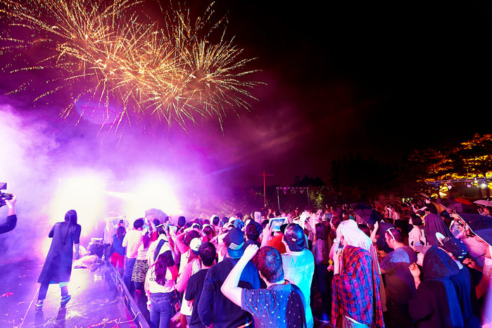 ▲지난해 열린 ‘서울그루브나이트&불꽃놀이’에 참여한 시민들이 하늘에 터진 불꽃을 바라보고 있다. |