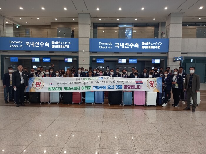 [로컬세계=김경락 기자] 전북 고창군은 이달말까지 3차례에 걸쳐 농촌 일손을 도울 캄보디아 계절근로자 150명이 순차적으로 입국한다고 22일 밝혔다. 지난해 대비 계절근로자 수급 인원이 확대돼 지역 농가들의 숨통이 트일 전망이다.
