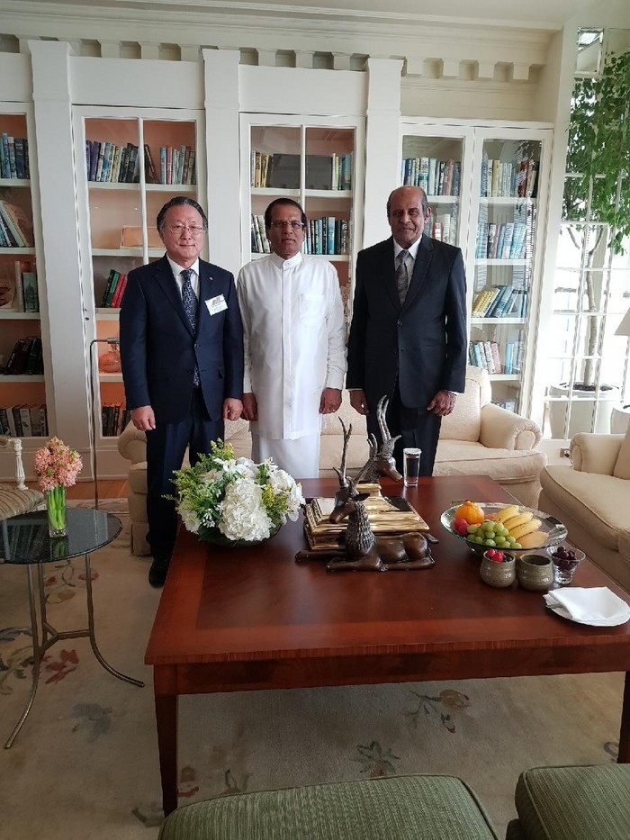 | ▲29일 서울 그랜드 하얏트호텔에서 개최된 '한-스리랑카 비즈니스 포럼'에서 김임권 수협중앙회장(사진 좌측)이 마이트리팔라 시리네사 스리랑카 대통령(가운데), 틸락 마라파나 스리랑카 외교부 장관(우측)과 수산협력 방안에 대해 논의했다.(수협 제공) |