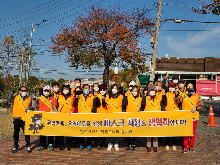 천광호 안전모니터 봉사단장은 “코로나19 시대 긴장의 끈을 놓지 않고 내가 사랑하는 우리가족, 우리이웃을 위해 마스크 쓰기를 통해서 코로나 없는 오산시가 되길 바란다”고 오늘 캠페인의 의미를 강조했다.