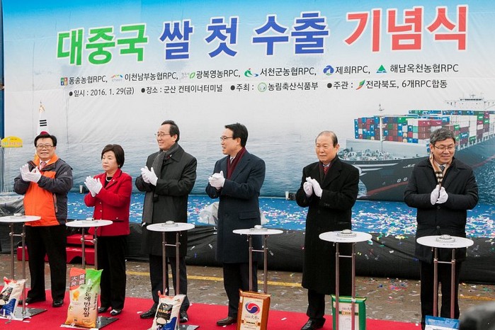 | ▲지난 1월 29일 군산컨테이너터미널에서 대중국 쌀 첫 수출 기념식이 열리고 있다. |