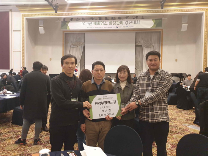 | ▲2019년 배출업소 환경관리 경진대회에서 화성시가 우수기관으로 선정되면서 기념사진을 찍고 있다.(화성시 제공) |