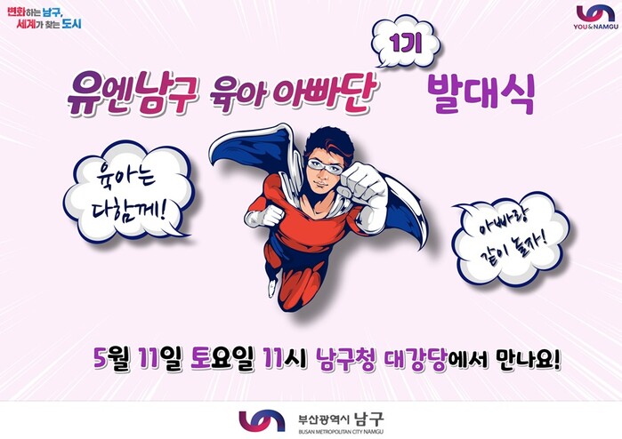[로컬세계 부산=맹화찬 기자]부산 남구는 오는 11일 남구청 대강당에서‘유엔남구 육아아빠단’1기 발대식을 개최한다.