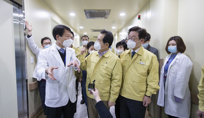 한편 정 총리와 이 지사는 곧바로 경기도의료원 수원병원을 방문해 음압병동 및 격리병실을 시찰하고 근무자들을 격려했다.