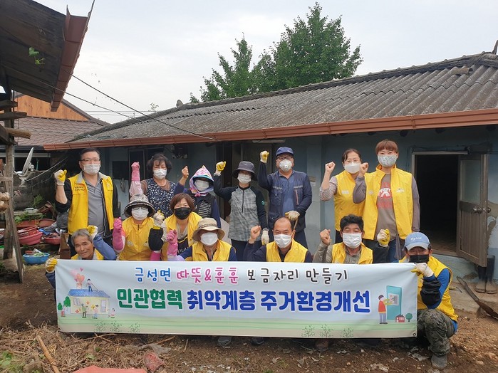 또 금성면남녀새마을지도자협의회는 오는 15일 싱크대 설치 및 도배·장판 교체로 깨끗한 환경에서 식사와 잠자리를 해결할 수 있도록 집수리를 실시할 계획이다.