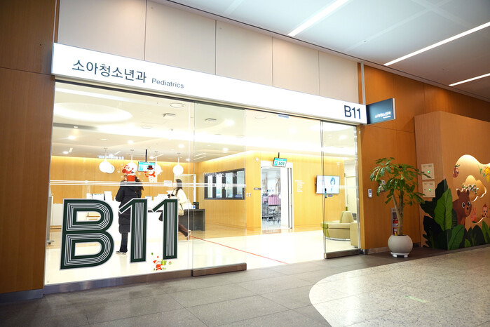 "소아청소년과는 지하 1층에서 정문 기준 가장 오른쪽에 있으니 B11번으로 가시고, 가정의학과는 3층 정문 기준 가장 왼쪽인 37번으로 가시면 됩니다."
