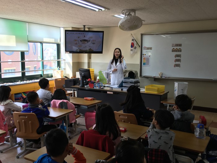 ▲고창군 보건소 관계자가 관내 초등학교를 방문해 구강건강관리교육을 하고 있다. |