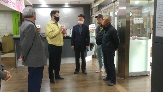소독현장을 찾은 이재철 고양시 제1부시장은 소독업체의 노고를 격려하면서 코로나19 극복을 위해 업소들의 적극적인 소독 동참 이행을 당부했다.