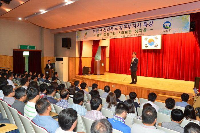 ▲지난 3일 이형규 전북도 정무부지사가 고창군을 방문해 공직자들을 대상으로 특강을 하고 있다. |