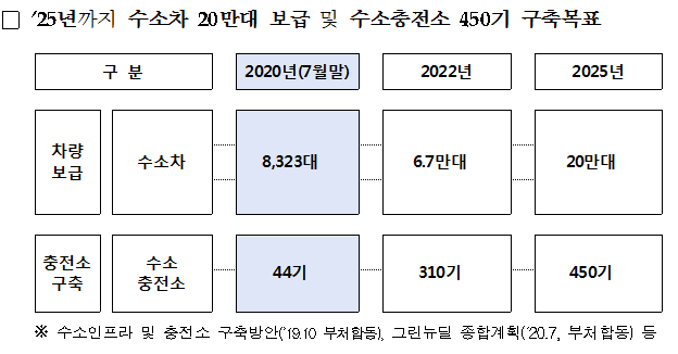 정부는 지난달 14일에 발표한 그린뉴딜 종합계획에서 2025년까지 수소차 20만 대를 포함해 미래차 133만 대를 보급하는 친환경 미래 모빌리티 추진계획을 공개한 바 있다.