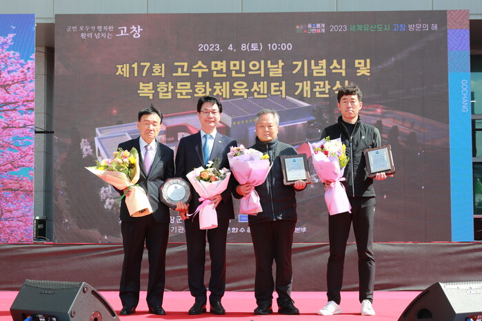 임정호 군의장이 고수면 발전에 기여한 공로로 고수면민회 감사패를 받았으며, 주식회사 옥토 대표이사 안창현씨, 고창군청 송은옥 주무관이 고수 복합문화체육센터 건립에 기여한 공로로 면민회 공로패를 수여받았다.