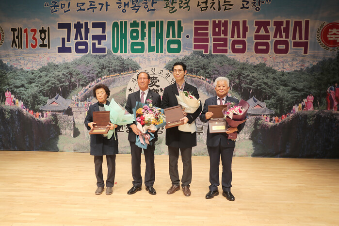 올해의 애향대상은 뜨거운 애향심으로 고향 예술발전에 많은 기여를 한 이현곤 작가가 수상했으며, 애향 특별상으로는 김상기 초록우산어린이재단 고창군후원회장, 김종현 경희종일한의원장, 전신마비 남편을 30년 동안 돌봐온 안혜숙씨가 각각 수상했다.