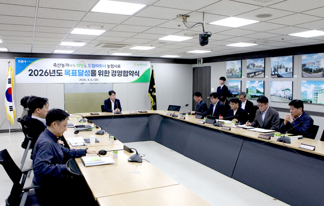 농협사료는 지난 6일 본사 회의실에서 중소가축분사 및 자회사(농협티엠알, 농협우리사료)와 '2026년 경영목표 달성을 위한 경영협약식'을 개최했다.