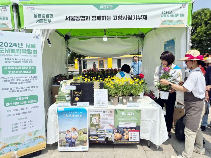 서울농협(본부장 김상수)은 24일~25일 이틀 동안 여의도 한강공원 이벤트광장에서 실시되는「2024 서울도시농업박람회」에 참가하여 고향사랑기부제 및 서울 관내 농협 답례품 홍보 부스를 설치한다.