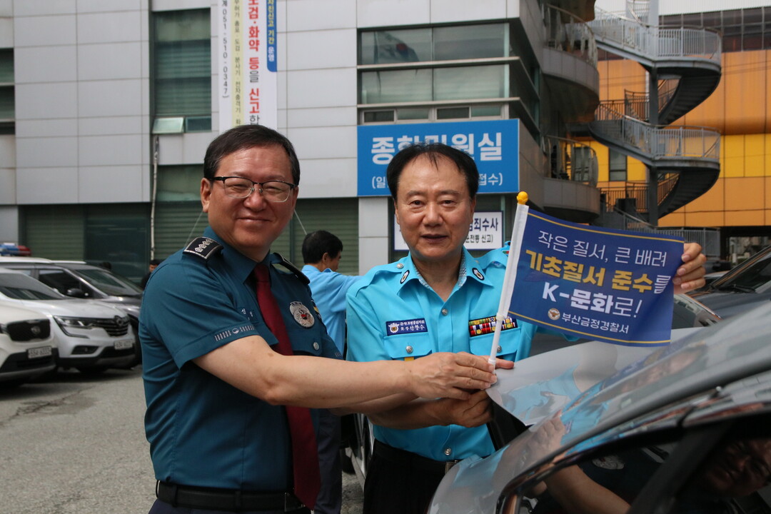 금정구 모범운전자연합회장 등 관계자들과 함께 모범택시 차량에 ‘작은 질서, 큰 배려 기초질서 준수를 K-문화로!’라는 문구가 담긴 홍보 깃발을 부착하며 진행된 이번 행사는 택시를 이용하는 시민들과 도로를 지나는 운전자들이 자연스럽게 기초질서의 중요성을 인식하여 올바른 생활질서 문화를 확산시키고자 마련되었다.