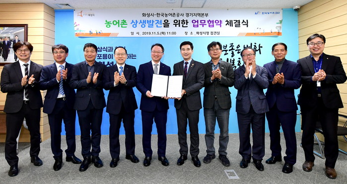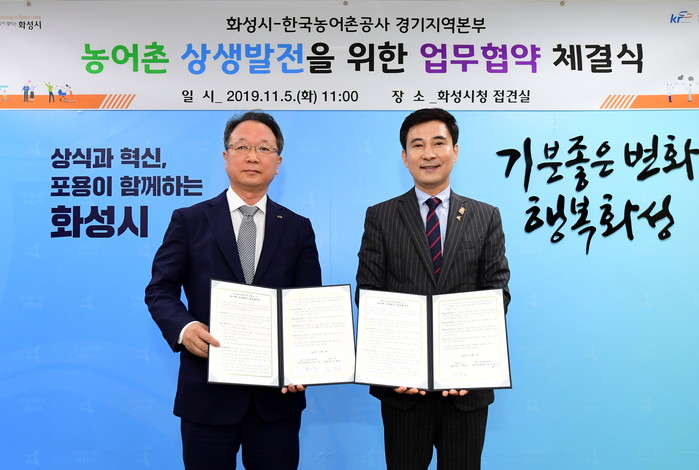 [로컬세계 고용주 기자]경기 화성시는 5일 시청 접견실에서 한국농어촌공사 경기지역본부와 2021년도 일반농산어촌개발 공모사업 선정을 위한 업무협약을 체결했다고 밝혔다.