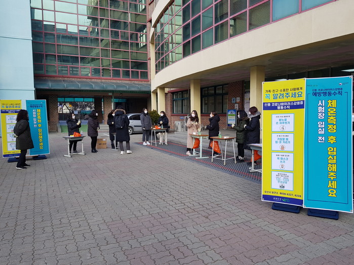 오산시는 8일 실시된 자격시험에 시 공무원 58명을, 시험 바로전일에 동향으로 파악된 9일자 민간시험에 시 자치행정과 공무원 8명과 보건소 직원 6명을 긴급 방역반으로 편성해 응시자 전원에 대한 손 소독, 마스크 배부, 체온 측정, 감염예방 홍보 등 방역활동을 실시했다.
