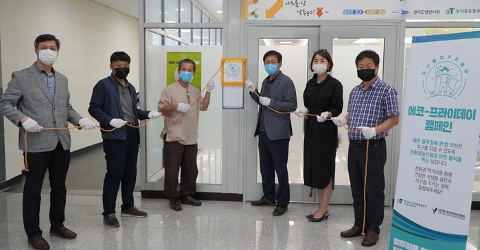 친환경농산물의무자조금 관리위원회(위원장 주형로)는 24일 aT농식품유통교육원(원장 이윤용)에서 에코-프라이데이 현판식을 진행했다.