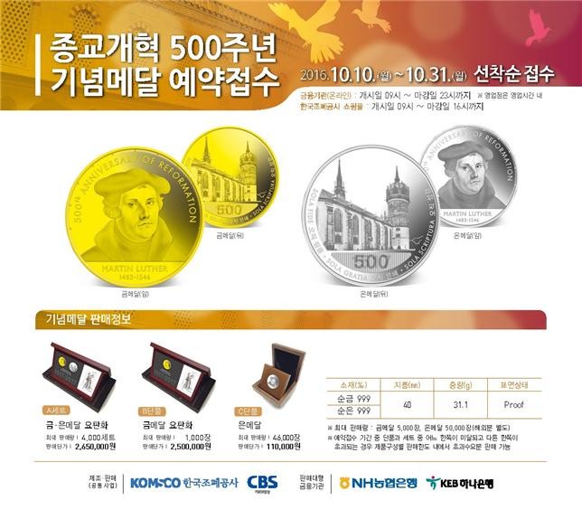 조폐공사는 이 같은 인류사적 개혁정신과 문화유산을 전승한다는 공익적 가치에 착안해 기념메달사업을 기획, CBS기독교방송과 함께 공동으로 종교개혁 500주년이 되는 내년 2017년까지 총 3차 걸쳐 기념메달 사업을 추진키로 하고 이번에 1차로 마르틴 루터와 독일의 비텐베르크성 교회가 새겨진 기념메달을 출시했다.