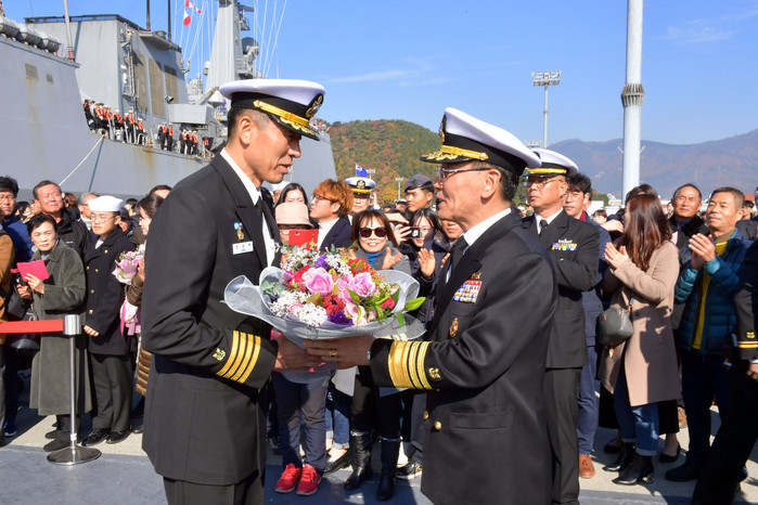 이날 환영식은 정진섭 해작사령관의 주관으로 주요 지휘관 및 해군 장병, 청해부대원 가족 등 1000여 명이 참석해 청해부대 장병들의 무사귀환과 임무완수를 축하했다.