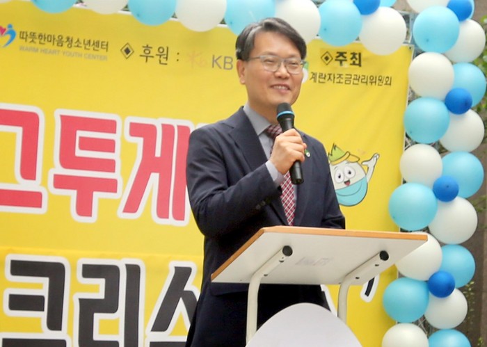 | ▲김종준 계란자조금관리위원회 사무국장이 29일 서울 구로구 따뜻한마음 청소년센터에서 열린 '에그투게더, 8월의 크리스마스' 행사에서 인사말을 하고 있다. 에그투게더는 "계란을 함께 나누자"는 의미를 가진 계란기부 캠페인으로 서울시 취약 계층에게 필수 영양공급원인 계란을 제공한다.(사진=계란자조금 제공) |