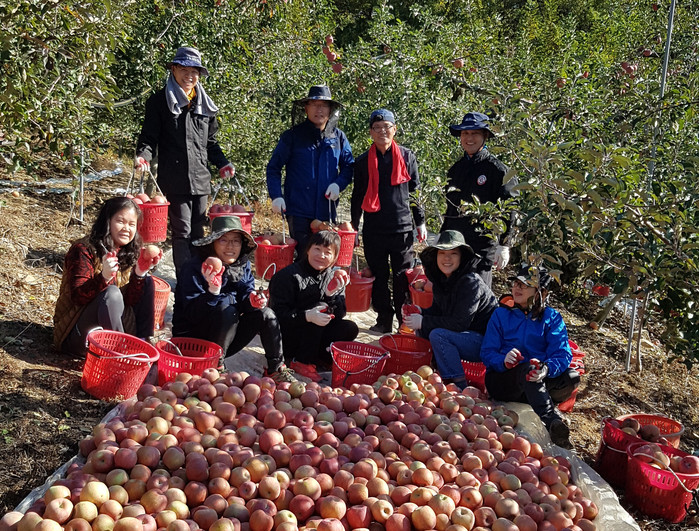 이번 일손돕기는 사과 수확기를 맞아 일손부족으로 어려움을 겪고 있는 농가에 조금이나마 도움을 주기 위해 진행되면서 직원 모두가 사과 수확과 사과꼭지 손질 작업에 구슬땀을 흘렸다.
