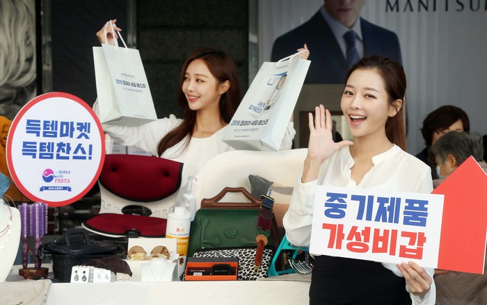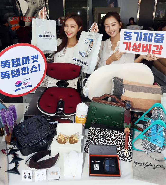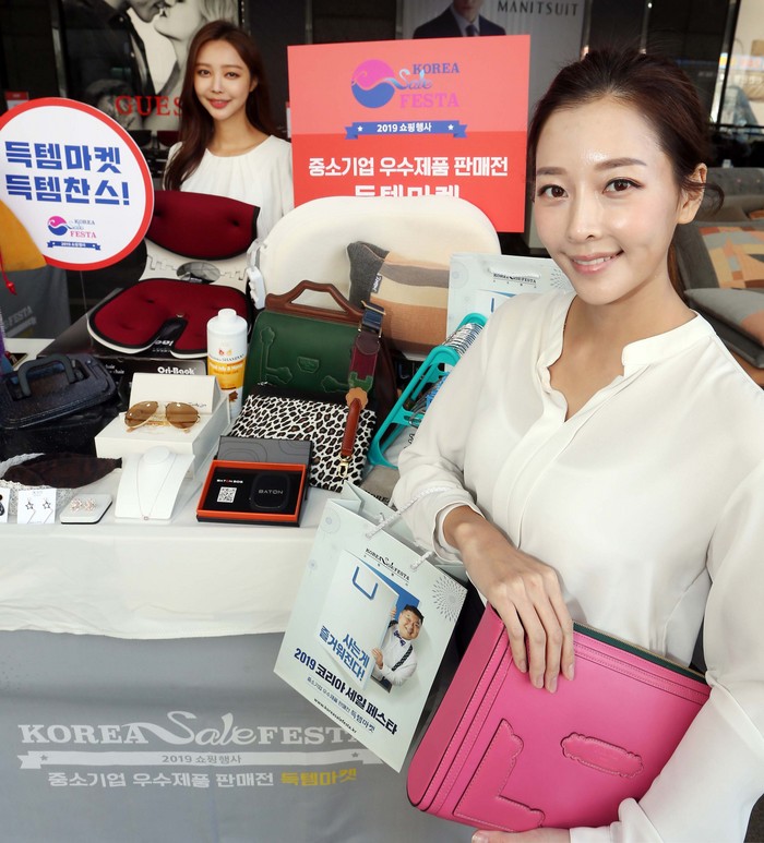 | ▲1일 2019 코리아세일페스타가 화려하게 개막한 가운데 서울 관악구 롯데백화점 관악점에서 중소기업유통센터가 진행하는 ‘2019 코리아세일페스타 중소기업 우수제품 판매전 득템마켓’에서 모델들이 중소기업의 가성비 좋은 우수제품들을 소개하고 있다. |