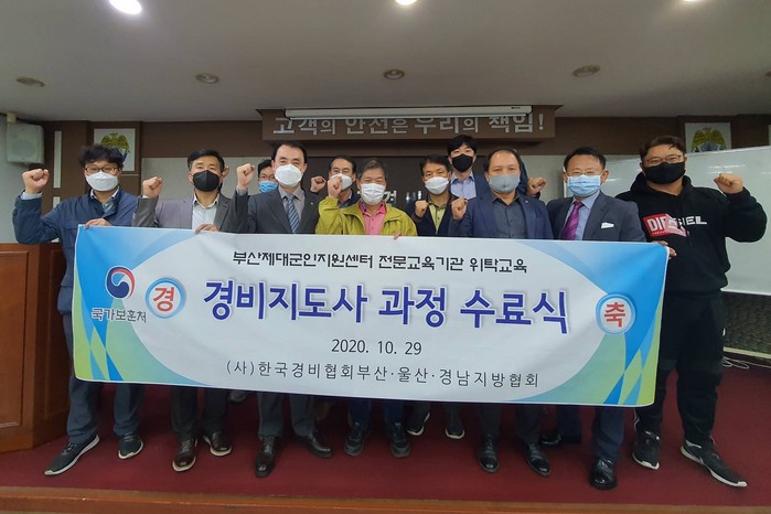[로컬세계 맹화찬 기자]부산지방보훈청(청장 권율정) 제대군인지원센터는 지난 29일 오후 6시 제대군인 위탁교육 ‘경비지도사과정’ 수료식을 (사)한국경비협회 부산·울산·경남지방협회에서 실시했다.