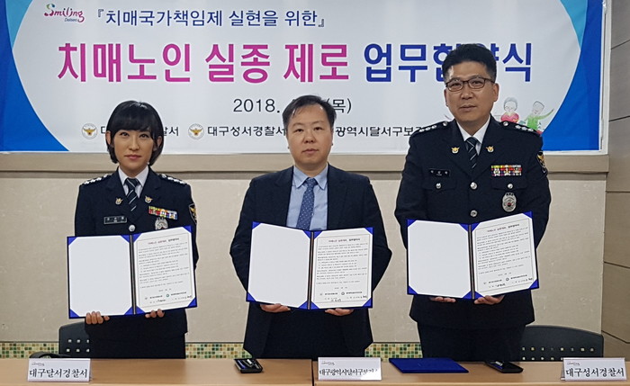 노형균 달서구 보건소장은 “이번 협약을 통해 치매 노인, 가족들이 안심하고 행복한 삶을 누릴 수 있도록 유관기관과의 협력을 강화해 나가겠으며, 치매 예방, 상담, 조기진단 등 치매노인실종 제로 등 치매국가책임제 실현을 위해 주민 최 일선에서 적극 노력해 나가겠다”고 말했다.