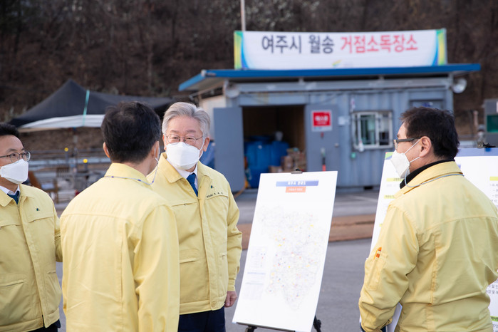 [로컬세계 이혁중 기자]이재명 경기도지사가 지난 7일 조류인플루엔자(AI)가 발생한 여주시 거점소독시설과 발생 인근 농장을 방문해 상황을 점검하고 철저한 방역을 주문했다.