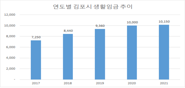 [로컬세계 김병민 기자]경기 김포시의 내년도 생활임금이 시급 1만150원으로 결정됐다.