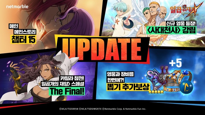 넷마블(대표 권영식, 이승원)은 모바일 RPG <일곱 개의 대죄: GRAND CROSS(이하 일곱 개의 대죄: 그랜드 크로스, 개발사 넷마블 펀)>에 신규 사대천사 영웅 2종을 추가하는 등 업데이트를 실시했다고 29일 밝혔다.
