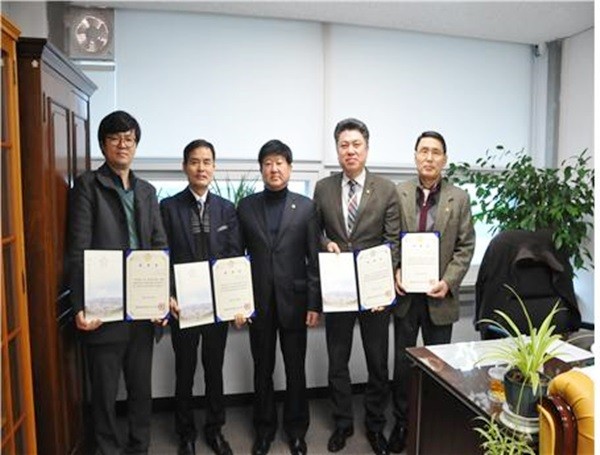 ▲대전중구의회는 26일 최경식 부의장(가운데)과 2015 회계연도 결산검사 위원들이 위촉식을 갖고 기념촬영하고 있다. |