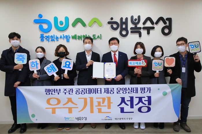 [로컬세계 박세환 기자]대구 수성구는 행정안전부가 주관하는 ‘2019년 공공데이터 제공 운영실태 평가’에서 우수기관으로 선정돼 행정안전부 장관 표창을 수상했다고 18일 밝혔다.