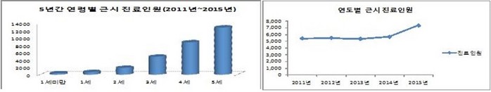 건강보험심사평가원 대전지원이 3일 내놓은 분석자료에 따르면 근시로 진료받은 영‧유아수는 지난해 7358명으로 2011년 5432명 대비 35.5% 증가했다.