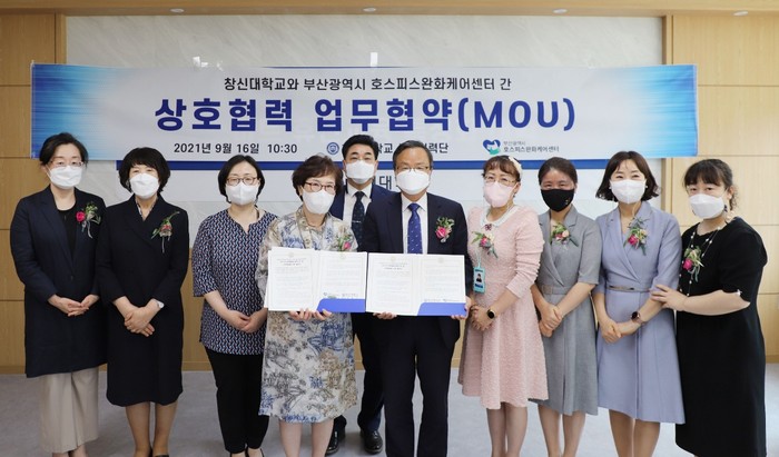| ▲부영그룹이 재정 지원하는 창신대가 부산광역시 호스피스완화케어센터와 상호협력 업무협약을 맺었다. [부영그룹 제공]
