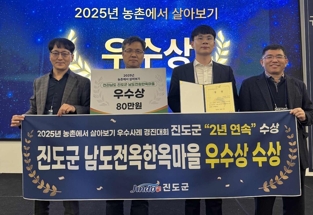 [로컬세계 = 이남규 기자] 전남 진도군의 남도전원한옥마을이 농림축산식품부가 주관한 ‘2025년 농촌에서 살아보기 우수사례 경진대회’에서 우수상을 수상하며 2년 연속 수상의 성과를 거두었다.