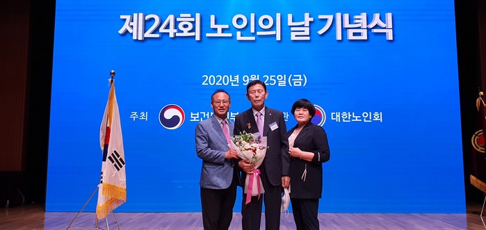 정 회장은 보건복지부와 대한노인회가 주최하고 대한상공회의소에서 열린 ‘제24회 노인의 날’ 기념식에 참석해 모범노인으로 대통령 표창을 수상했다.