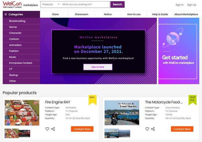 문화체육관광부와 한국콘텐츠진흥원(콘진원)은 신한류를 이끌 K-콘텐츠의 해외진출을 지원하기 위해 자체 콘텐츠수출마케팅플랫폼 ‘웰콘(WelCon)’에 온라인 B2B ‘마켓플레이스’ 기능을 장착하고 본격 서비스에 나섰다.