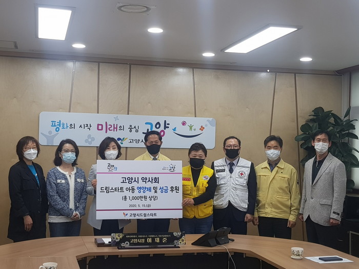 [로컬세계 최아침 기자]경기 고양시는 지난 15일 고양시청 열린회의실에서 고양시약사회와 코로나19 위기극복을 위해 생활이 어려운 드림스타트 아동을 돕기 위한 “드림스타트 아동 영양제 및 성금 전달식”을 가졌다고 20일 밝혔다.