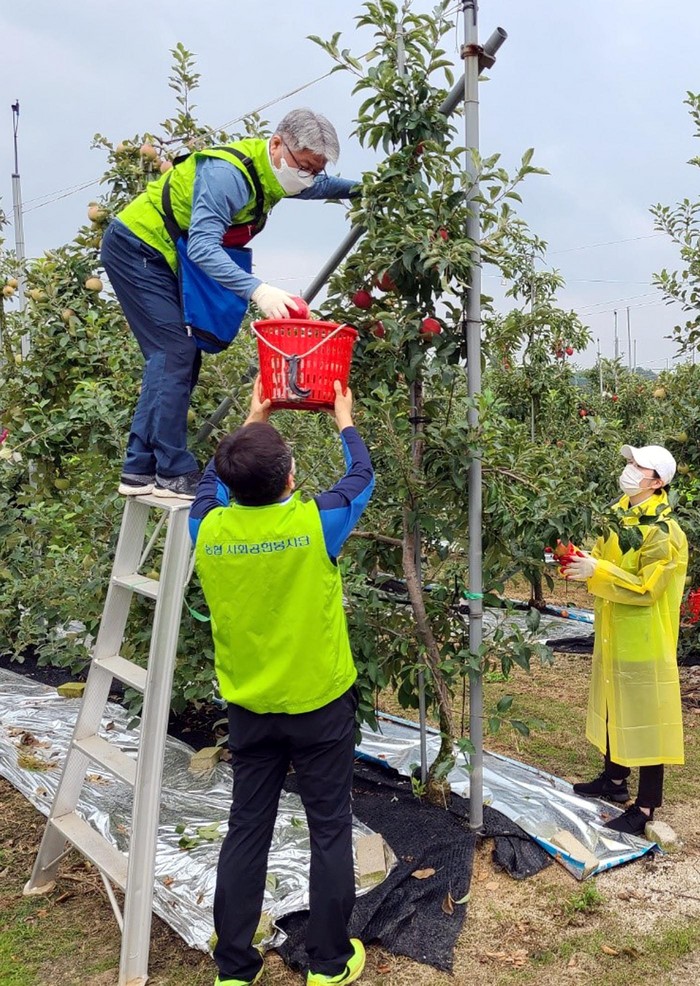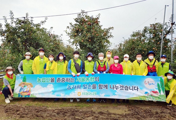 서울농협 임직원 20명은 이날 경기도 포천시 신북면 소재 농가를 방문해 추석을 앞두고 출하가 필요한 사과 수확작업을 진행했다.
